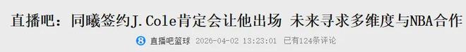 国内知名篮球平台报道称:同曦队肯定会让J.Cole披挂上阵,并且希望借此与NBA达成合作机会。J.Cole拥有NBA东部球队夏洛特黄蜂的股份。