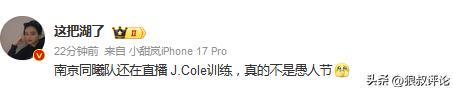 南京同曦队还在直播 J.Cole训练,真的不是愚人节