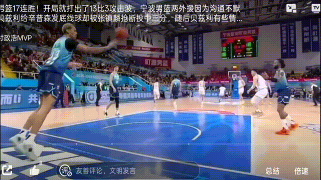 整个事件的导火索,说起来既荒唐又搞笑。贝兹利站在底线准备发球,一个平平无奇的传球,直接被张镇麟手起刀落抢断,还投进了一记三分球。但真正的噩梦在第二回合:贝兹利再开底线球时,直接拒绝传给队友辛普森,导致五秒违例,然后赌气似的把球扔在地上。
