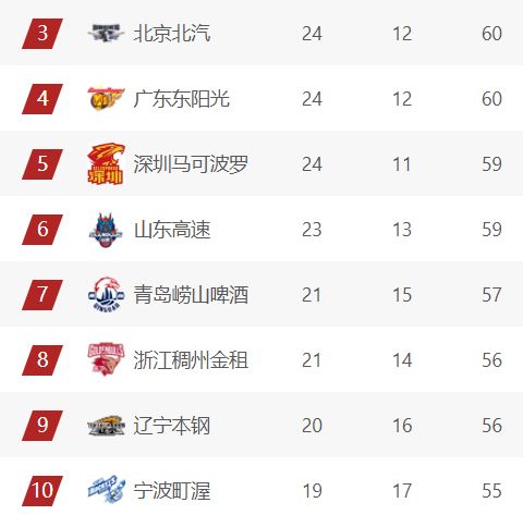 宁波、北控、福建本轮都输了比赛,宁波目前落户辽宁1分下滑来到第10,北控遭遇3连败仍然处于第12,北控、龙狮、福建接连输球,同曦近4场取得2胜2负,和福建、新疆同积49分,和北控的差距重新又缩小来到2分,接下来同曦和广州、吉林、新疆有3场季后赛卡位战要打,冲击季后赛的可能性仍然不小。