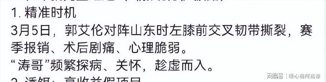造谣者说郭艾伦术后回辽宁看厂房、被骗子趁虚而入。