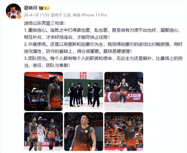 面对滔天质疑,鲁媒名记夏晓司提出三点建议:重拾信心,连败中更需凝聚士气,彼此补台而非相互指责;优化外援使用,以克里斯与珀塞尔为核心,释放其进攻属性,赢球才是硬道理;强化团队担当,无论主力替补,都应明确职责,以奉献精神替代个人主义。