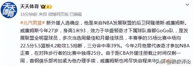 今年2月他曾代表奇才参加NBA正赛,在对阵步行者的比赛中独得25分。由于距CBA外援注册截止时间仅剩一周,首钢俱乐部将加紧为他办理手续,威廉姆斯也将尽快启程来华。