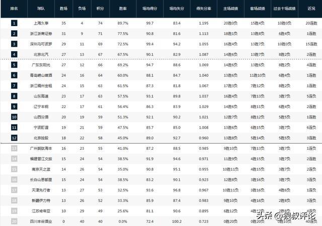 CBA最新排名:前二名正式确定 深圳力压京粤 北控争12稍微占优
