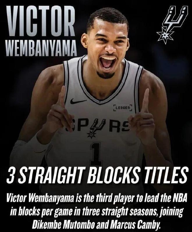 如无意外,文班会超越穆大叔的连续5年盖帽王,最后成为联盟历史的盖帽王。