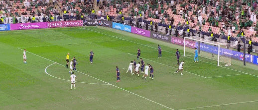 半场补时第3分钟,少打1人的吉达国民顽强扳平比分。加莱诺开出角球,前米兰中场凯西头球破门,将比分变为1-1。