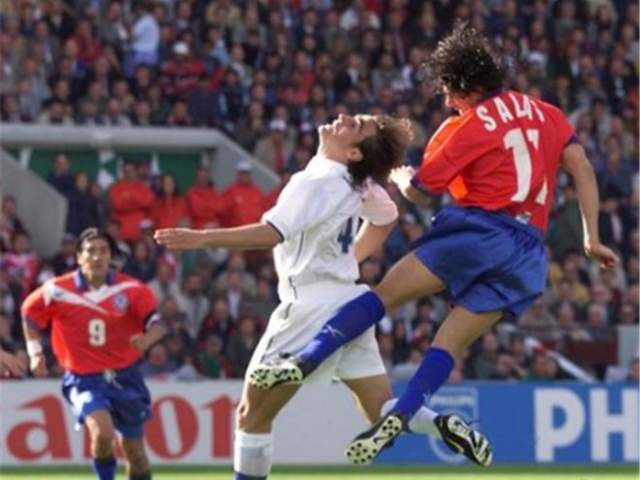 到了淘汰赛,智利队不幸碰到了群星璀璨的巴西队。虽然队友们防不住罗纳尔多和里瓦尔多,导致智利1比4惨败出局,但萨拉斯依然在比赛中攻破了巴西门将塔法雷尔的十指关。