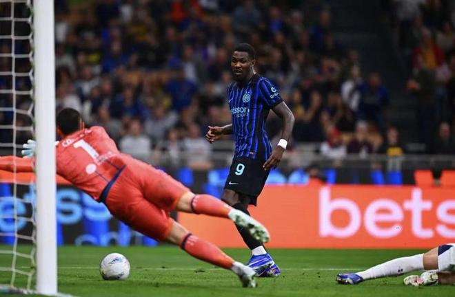 国米下半场的三连击干净利落,第53分钟迪马尔科助攻,小图拉姆门前轻松破门,1比0;第56分钟邓弗里斯打门被挡,巴雷拉插上爆射破门,2比0。第92分钟泽林斯基弧顶处抽射直挂死角,一脚世界波,帮助蓝黑军团3比0锁定胜局。