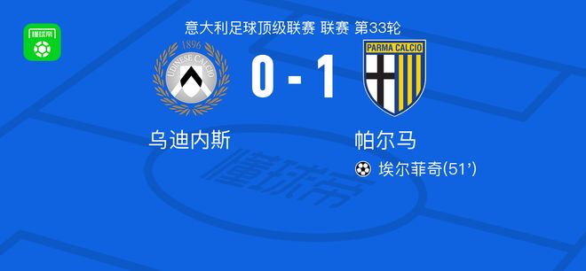 北京时间4月18日意大利足球甲级联赛第33轮,乌迪内斯主场对阵帕尔马。比赛中,帕尔马球员通过配合由埃尔菲奇打入制胜球。最终比分乌迪内斯0-1帕尔马。