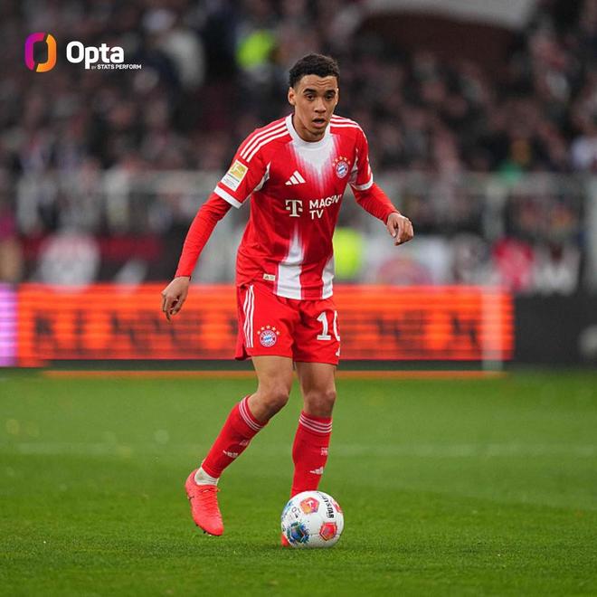 此役主场对阵斯图加特,穆西亚拉首发出战,迎来代表拜仁慕尼黑出战的第150场德甲比赛。