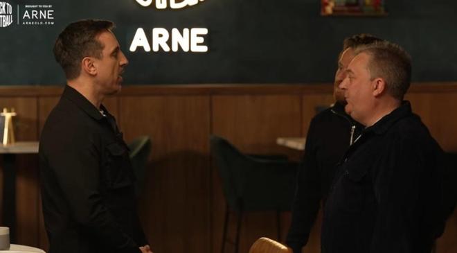 时隔二十一年,加里-内维尔与当年曼联一场争议事件的核心当事人再度偶遇,在节目上认出眼前这名埃弗顿球迷的身份后,他半开玩笑地直呼对方混蛋。